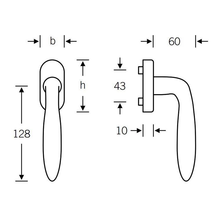 Design Johannes Potente Ausführung mit 90°-Rastung, für Dreh-Kipp-Fenster Nocken 10 mm Durchmesser Verschraubung verdeckt verschraubt Befestigungspunkt 43 mm Abstand