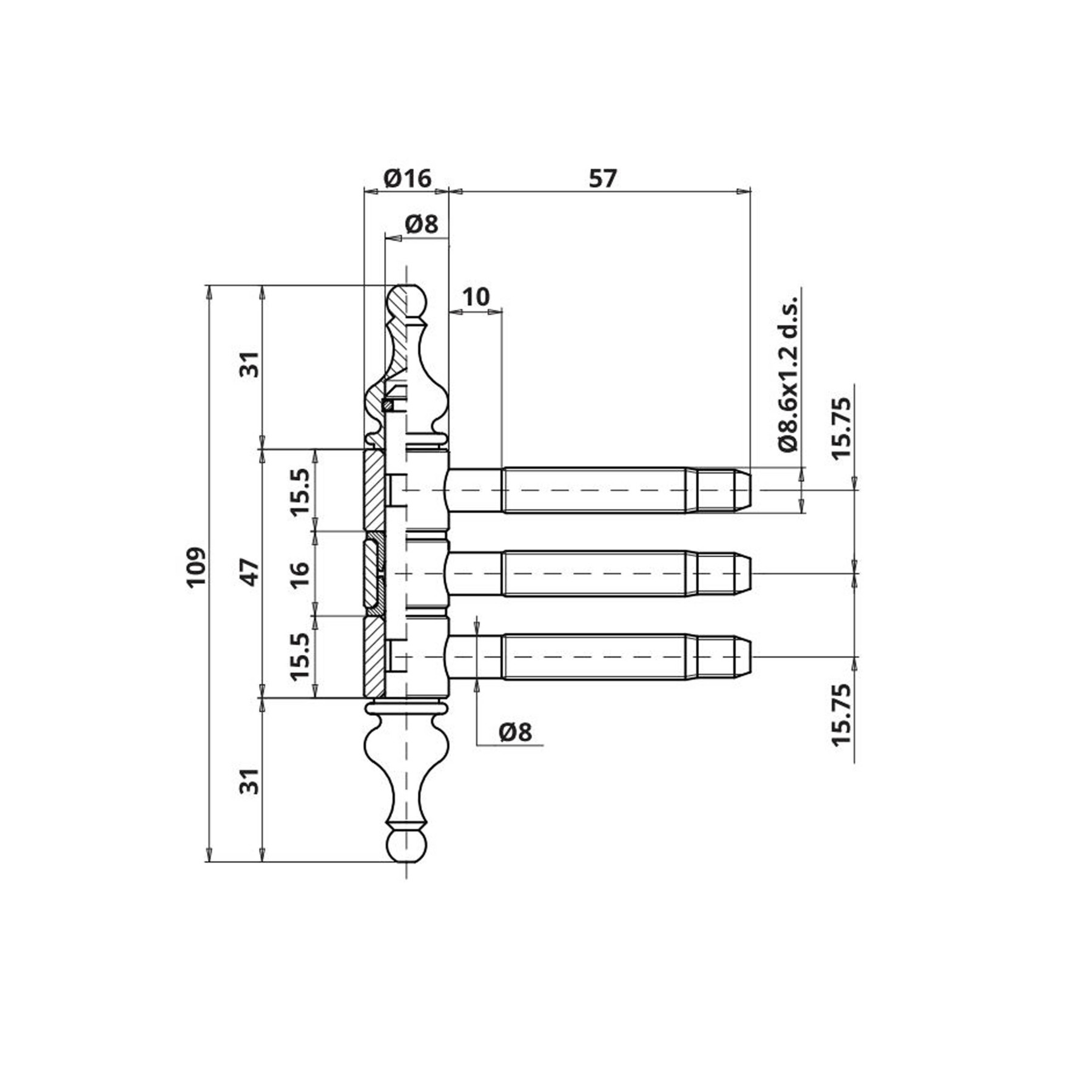 330 OTLAV Einbohrband 16 mm brüniert mit Zierkopf