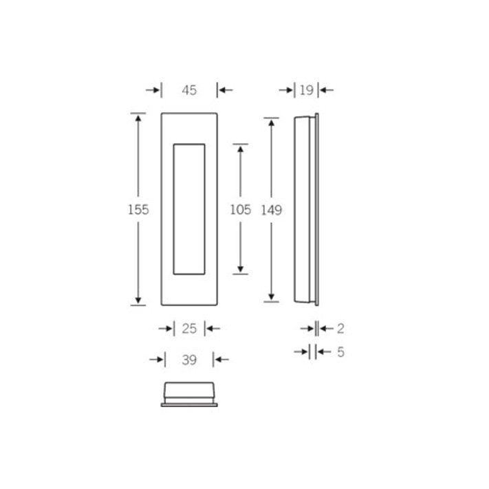 - Offene, rechteckige Einlassmuschel für Schiebetüren