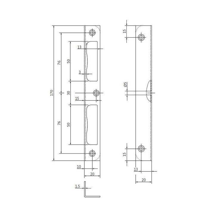 Produktart BKS Winkelschließblech Material Edelstahl (Niro) Maße 20 x 20 x 170 mm Materialstärke 1,5 mm Form Abgerundet Richtung DIN Links / DIN Rechts