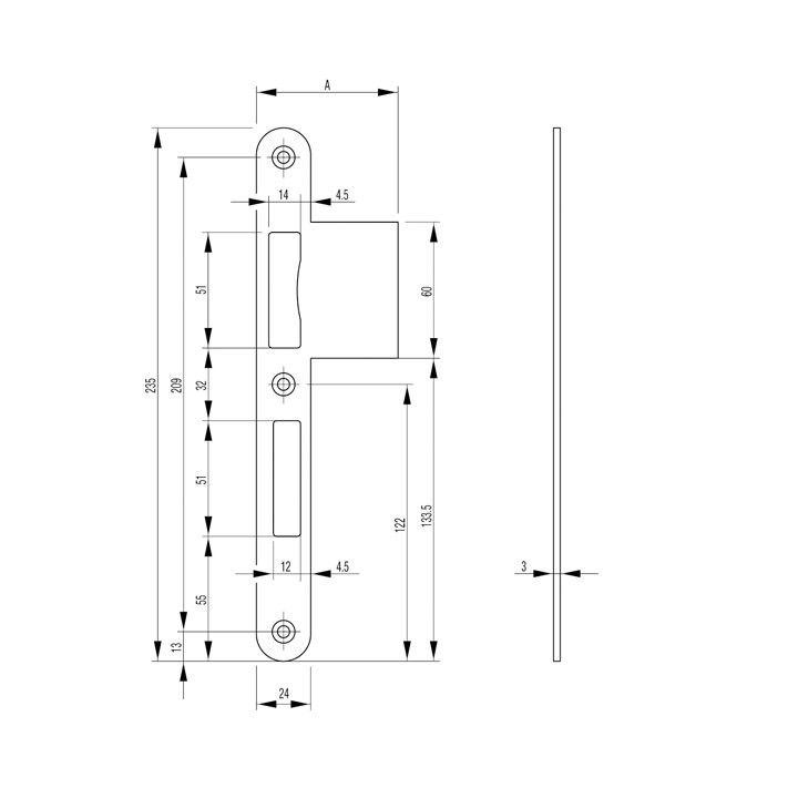 Das BKS Lappenschließblech 9000 0395 (DIN links) bzw. 9000 0396 (DIN rechts) besteht aus hochwertigem Edelstahl. Die Form ist abgerundet, der Lappen käntig ausgeführt.Modell 9000 0395 (DIN Links) / 9000 0396 (DIN Rechts) Material Edelstahl Form abgerundet, Lappen kantig Maße 24 x 235 mm Maß A 62,5 mm Materialstärke 3 mm Richtung DIN Links / Rechts auswählbar