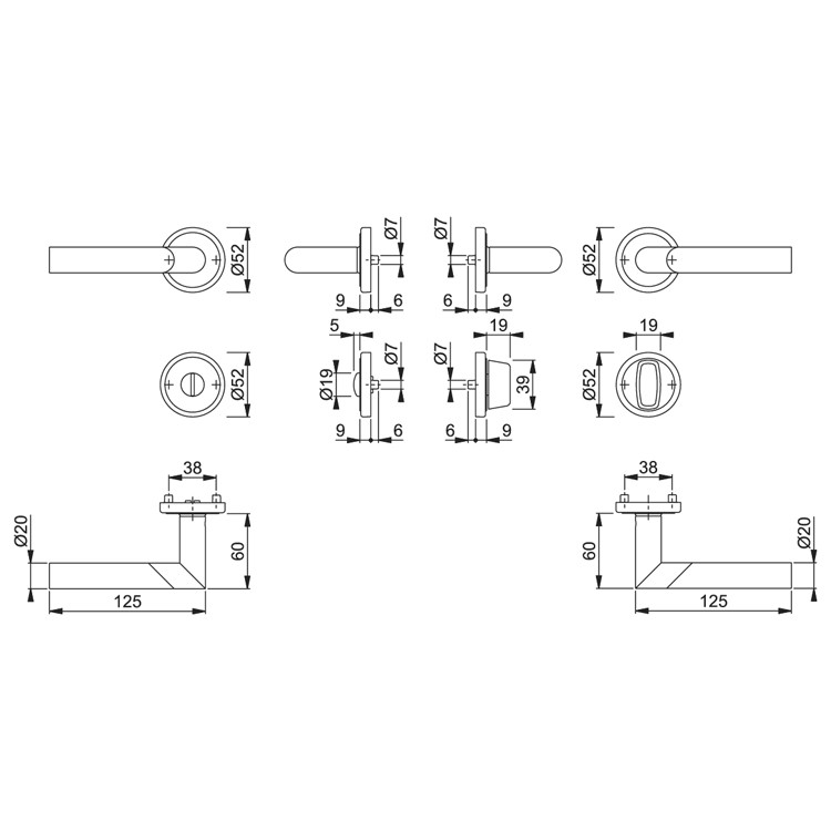 Ausführung HOPPE-Schnellstift-Verbindung Verschraubung verdeckt, durchgehend, mit Gewindeschrauben Rosetten mit Kunststoff-Unterkonstruktion und Stütznocken, Rückholfeder - Zubehör