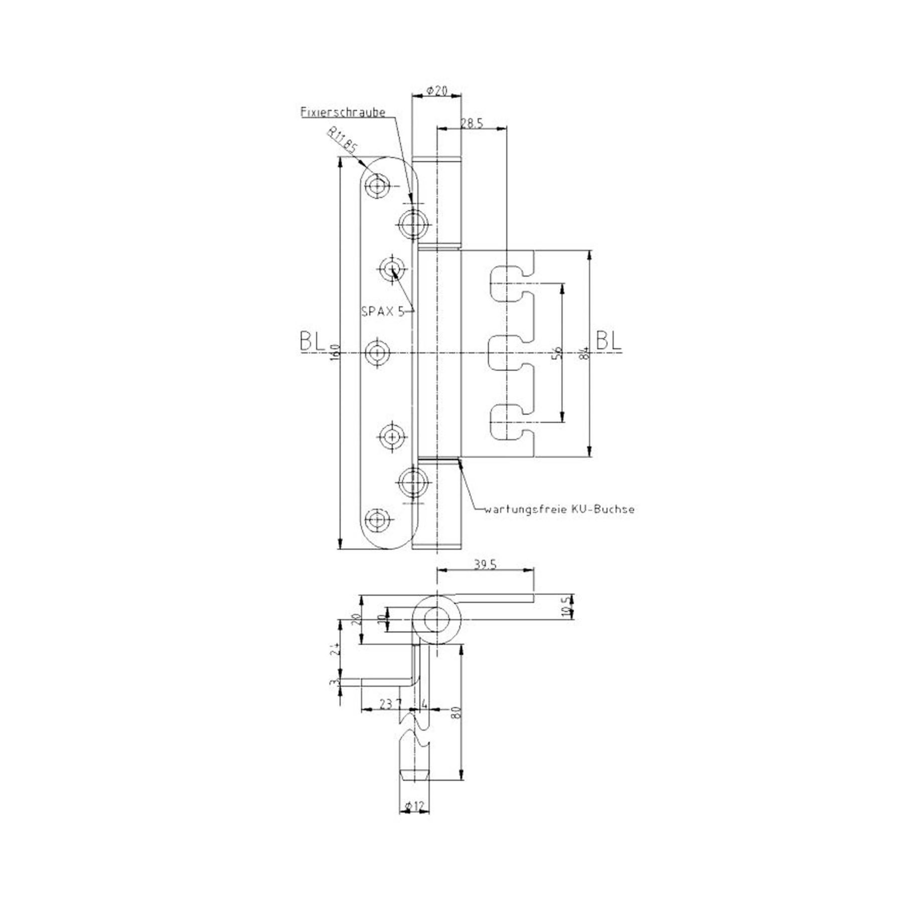 Stiftsicherung (SI-Stifte für zusätzliche Stabilität), eingebaut demontierbarNormbelastung Türgewicht 160 kg (pro Paar) Bandtasche für 3-D Bandtaschen mit