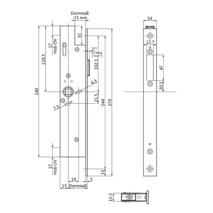 BKS Treibriegelschloss 1990 35-24 kantig Niro