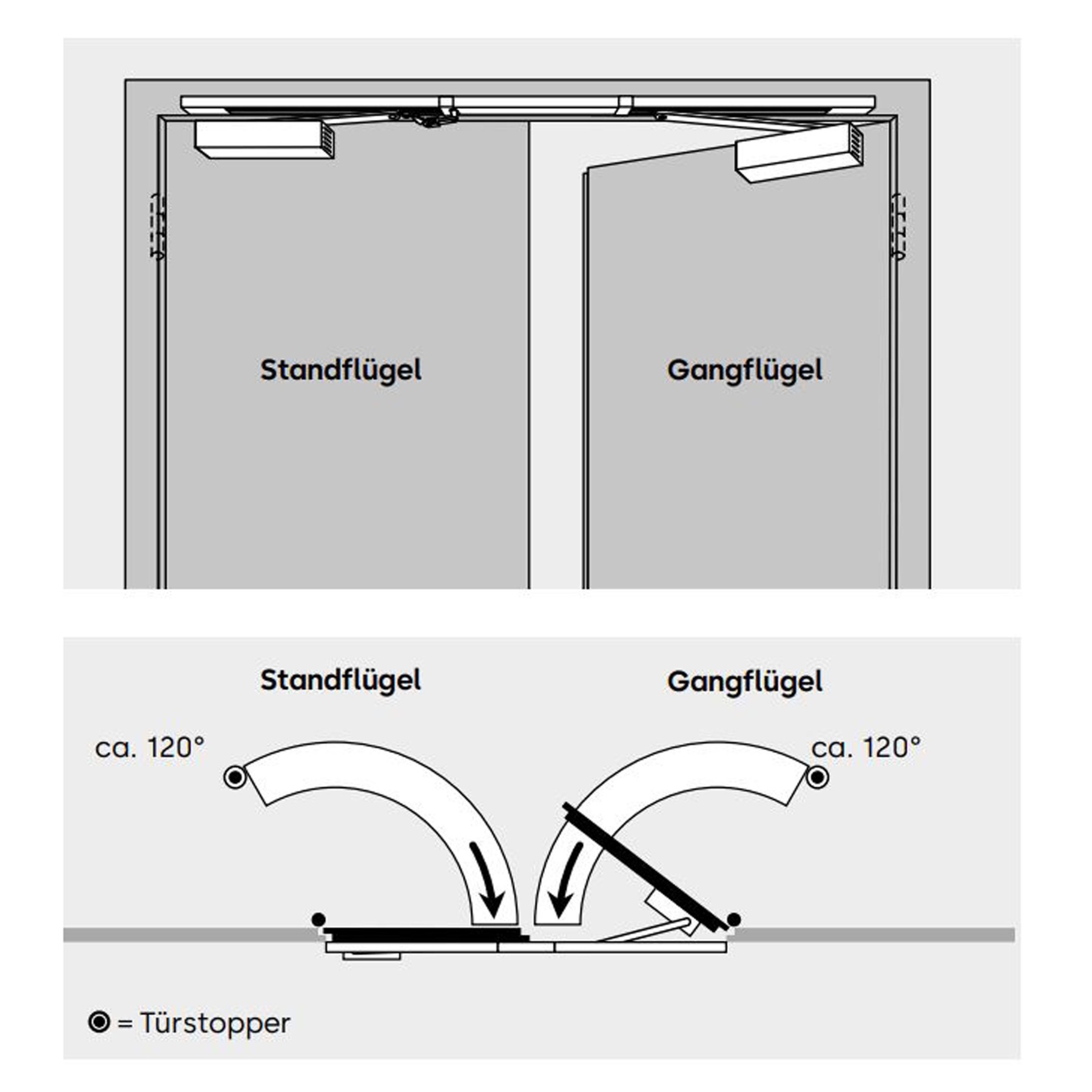 Modell GSR/V/BG Funktion Schließfolgeregelung Ausführung mechanisch Türbreite min. 1500 mm max. 2500 mm Öffnungsbegrenzung zwischen 80° und max. 120° Montageart Bandgegenseite Passend für TS 93 G Das System DORMA TS 93 G-SR/BG ist vom Staatlichen Materialprüfungsamt, Dortmund, für die Verwendung an 2-flügeligen Türen geprüft. Eignungsnachweis in Verbindung mit der jeweiligen Feuer- und Rauchschutztür erforderlich.