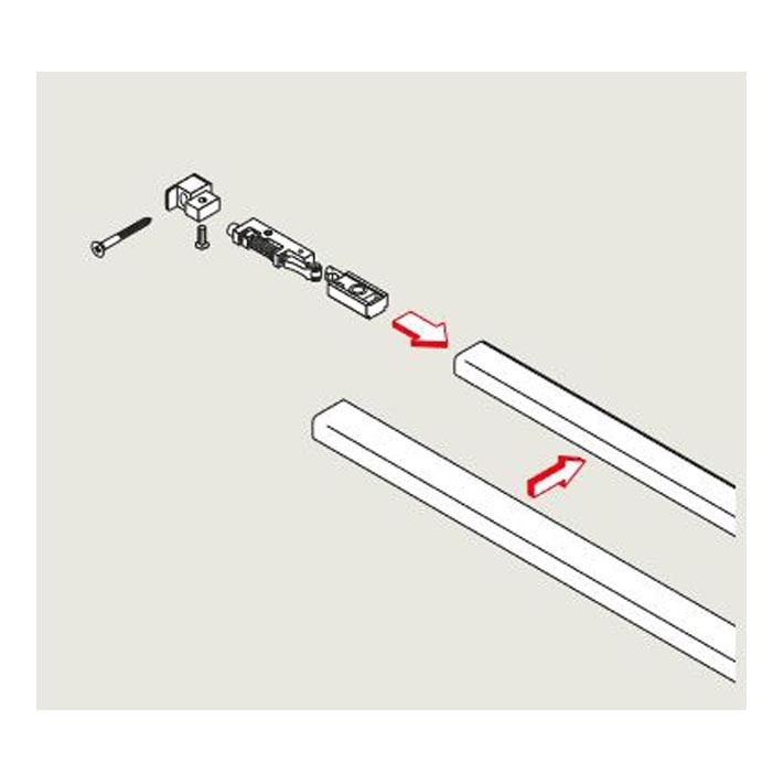 Die Rastfeststelleinheit ist sowohl für DIN-L- als auch für DIN-R-Türen geeignet und ist zur Nachrüstung der Gleitschiene vorgesehen.