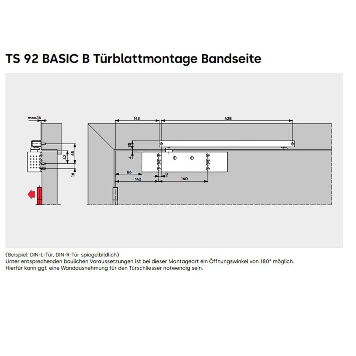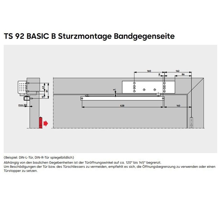 Dormakaba Obentürschließer TS 92 B BASIC EN 1-4 inklusive Gleitschiene und Montageplatte