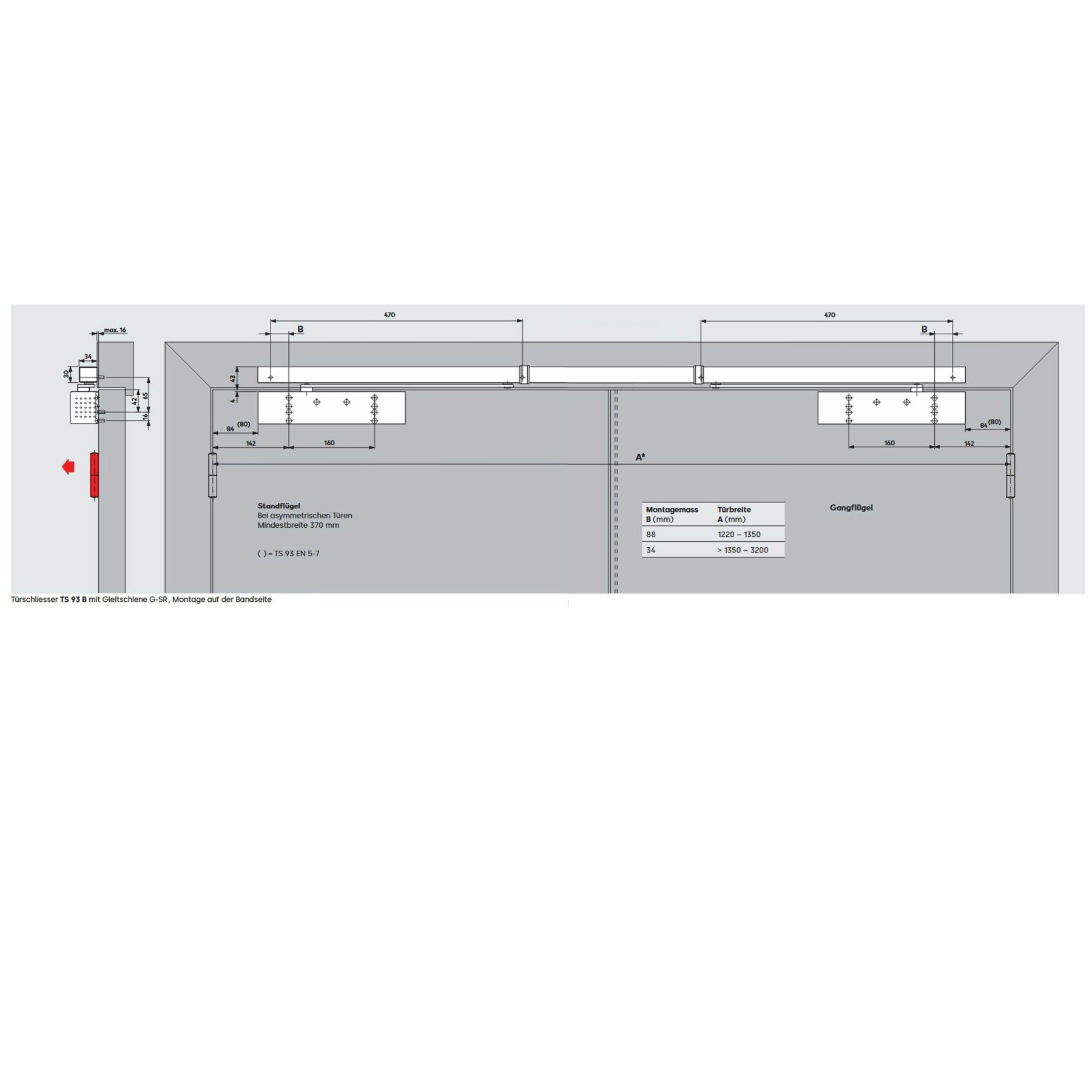 - TS 93 GSR BG Ausführung Bandgegenseite: Türblattmontage auf der Bandgegenseite