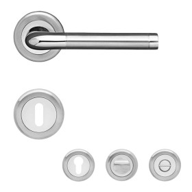 Die besondere Rosettengarnitur Babylon wertet durch ihr exklusives Design und dem spielerischen Einklang von Edelstahl poliert und Edelstahl matt jede Ihrer Türen auf.- Türdrücker ohne Schlüsselrosette, mit der Lochung (BB, PZ, WC)