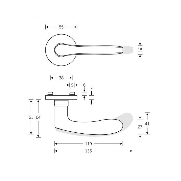 Ausführung festdrehbar mit Hochhaltemechanismus Rosetten edelstahlverstärkte Kunststoff-Unterkonstruktion und Stütznocken Verschraubung verdeckt, durchgehend, mit M5 Edelstahl-Gewindeschrauben Betätigungswinkel 45° Oberfläche Edelstahl matt (auch erhältlich in Alu F1) - Zubehör