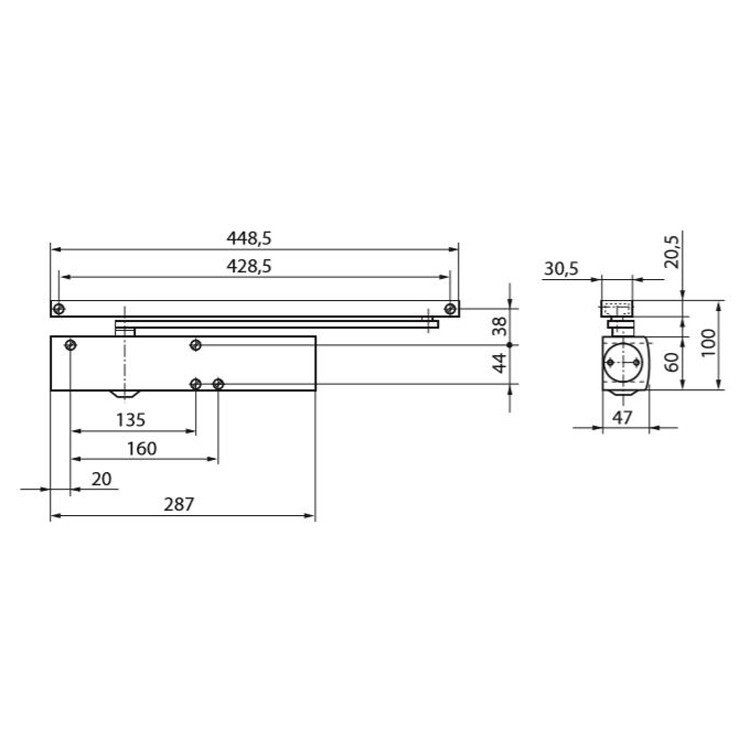Anzahl Türflügel einflügelig Öffnungswinkel max. 180° Öffnungsdämpfung Ja, hydraulisch einstellbar Schließkraft einstellbar Ja, stufenlos Endschlag einstellbar Ja, über Ventil Schließkraft EN 2 - 6 Türbreite max. 1400 mm Schließgeschwindigkeit einstellbar Ja Material Stahl Einsatzbereich Anschlagtür Montageart Türblattmontage Bandseite; Kopfmontage Bandgegenseite Zulassungen Türschließer geprüft nach EN 1154 Oberfläche silberfarbig - Zubehör