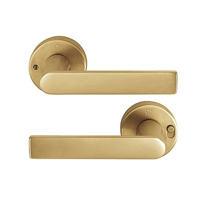 HOPPE M1642/42VR Los Angeles Türdrücker Rosettengarnitur MiniLock Messingfarben hell satiniertDie HOPPE Türgriff-Garnitur Los Angeles kombiniert elegantes Design mit praktischer Funktionalität. Gefertigt aus hochwertigem Messing und versehen mit einer hell satinierten Resista®-Oberfläche, bietet sie nicht nur eine edle Optik, sondern auch eine hohe Widerstandsfähigkeit gegen Abnutzung und Korrosion.