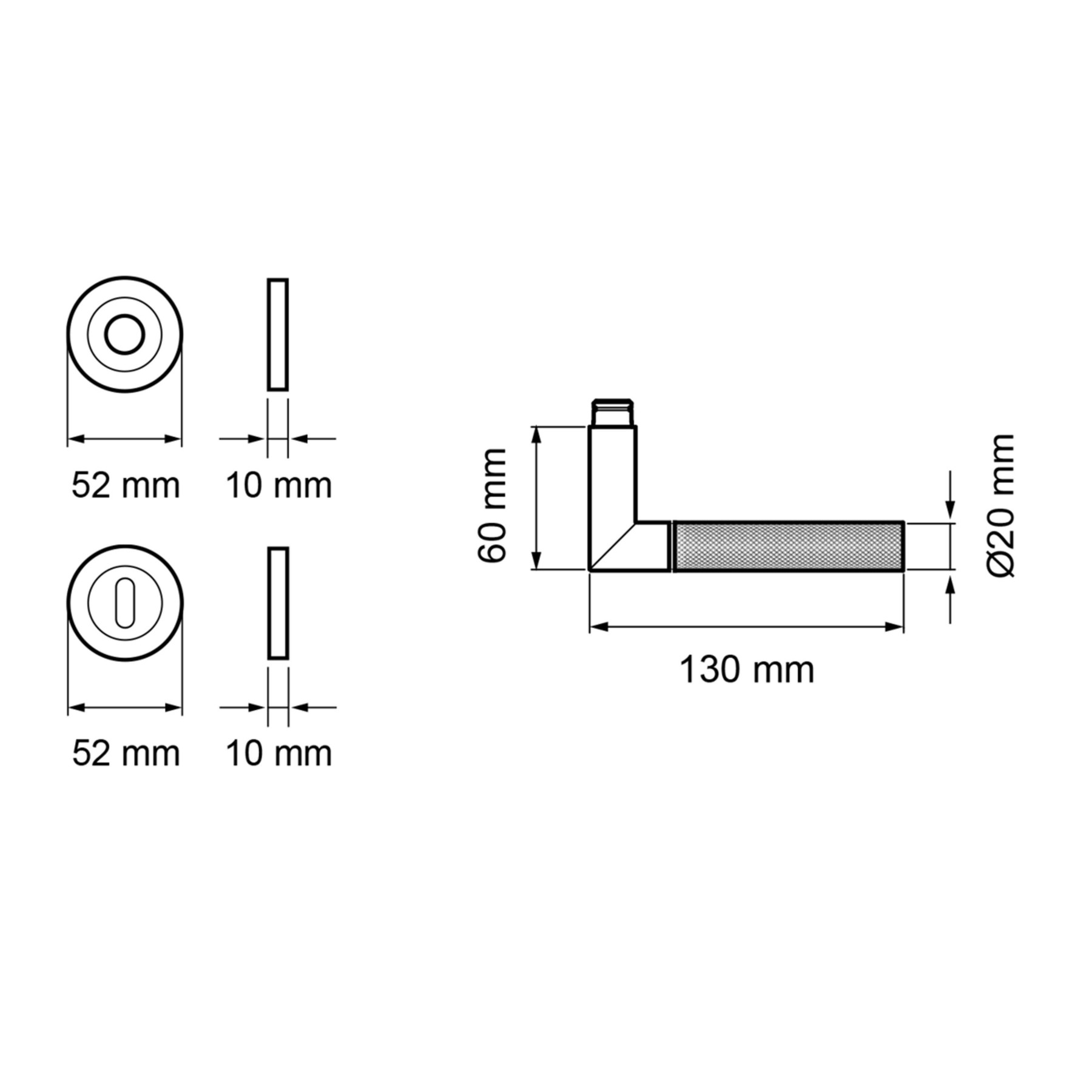 Vielseitig einsetzbar: ideal für Wohn- und ArbeitsbereicheKonstruktion 3-teilige Rosette, rund Material Edelstahl Gebrauchskategorie Klasse 3 Vierkantmaß Exzentrisch gebohrt 8x8 mm Griffmaß 130 x 60 mm ∅ 20 mm Rosettenmaß ∅ 52mm Lochung Wahlweise BB, PZ oder WC DIN 1906 Dauerhaftigkeit Klasse 7 DIN 1906 -Korrosionsbeständigkeit Klasse 3 Wählen Sie zwischen Kosmos schwarz und Edelstahl matt!