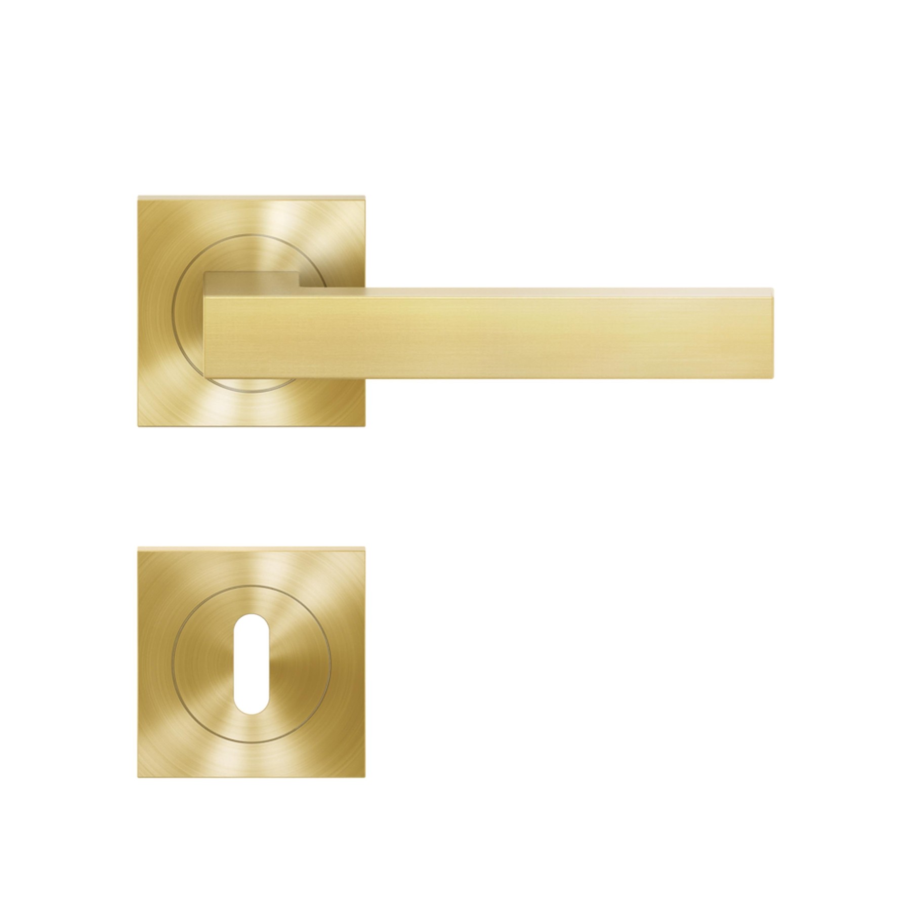 Karcher ER46Q Seattle Türdrücker Rosettengarnitur Messing mattDer Karcher ER46Q Türdrücker überzeugt mit einem klaren, minimalistisch-geometrischen Design, das perfekt zu modernen Wohn- und Arbeitswelten passt. Die matte Messing-Oberfläche mit goldenen und bronzenen Nuancen setzt dezente, aber stilvolle Akzente – für Räume mit Charakter und Eleganz.