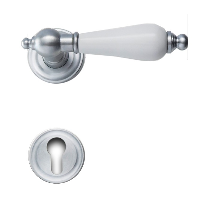 39/65/660 GHIDINI Oscar Türgriff-Rosetten-Garnitur Messing mattchrom / Porzellan weiß