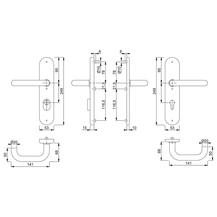 Ausführung HOPPE-Schnellstift-Verbindung, wartungsfreies Gleitlager Verschraubung durchgehend, verdeckt, mit Gewindeschrauben M6 Unterkonstruktion außen: Stahl, innen: Zamak, Stütznocken - Zubehör