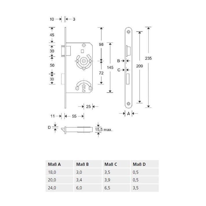 - Einsteckschloss der Klasse 1 für leichte Innentüren