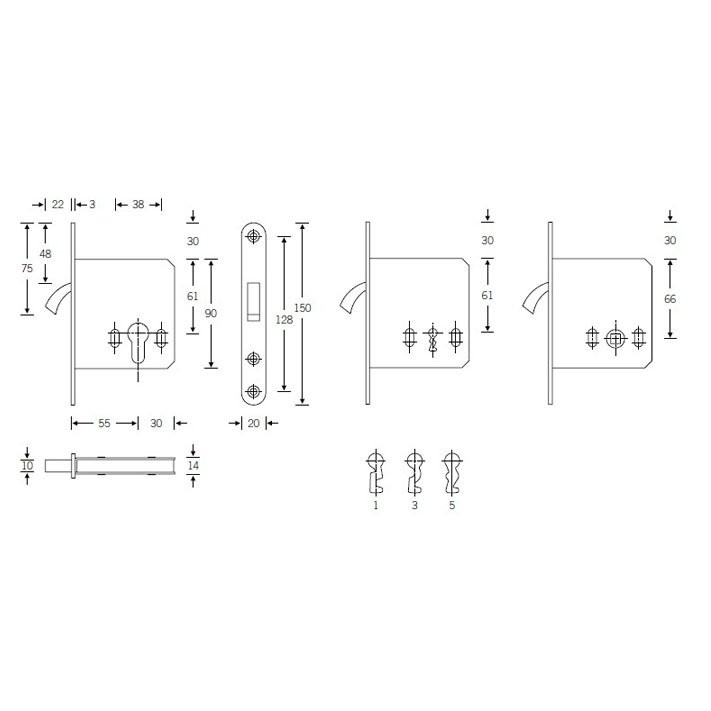 ST71 Pegau Zirkelriegel Schiebetürschloss inklusive Schließblech 4240 Dornmaß 55 mm BB