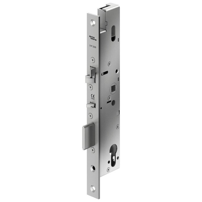 Das herausragende Merkmal dieses Antipanik-Schlosses ist die automatische Verriegelung der Tür unmittelbar nach dem Schließen, wobei der Riegel automatisch in Position geht. Gleichzeitig erfolgt die Arretierung der Kreuzfalle und gewährleistet eine zuverlässige Zweipunktverriegelung. Durch die Antipanikfunktion der SVP Schlösser ist sichergestellt, dass die Tür von innen jederzeit leicht durch das Betätigen des Türdrückers oder der Panikstange geöffnet werden kann.