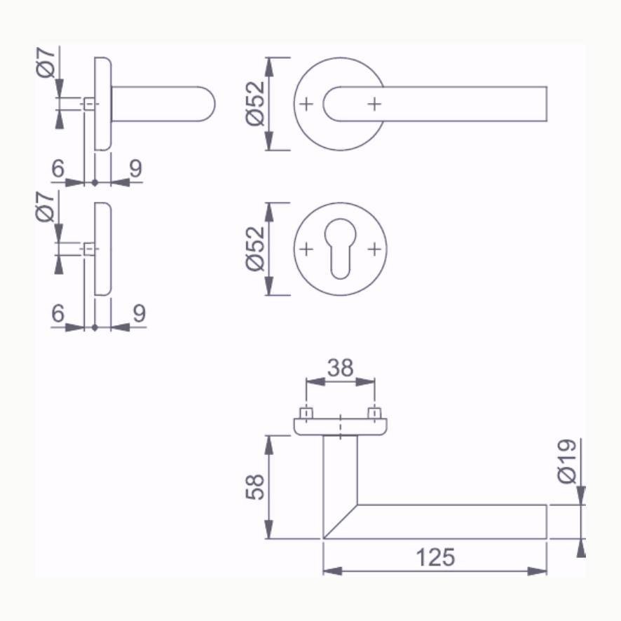 Ausführung HOPPE-Profilstift Verschraubung verdeckt, durchgehend, wechselseitig, Mehrzeckschrauben Rosetten mit Rückholfeder, Kunststoff-Unterkonstruktion, Stütznocken - Zubehör
